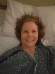 20161218_203203 Posted by sonyahuber on January 19, 2017January 19, 2017 Carolyn Bevers: The first one is right after the knee replacement surgery. A woman lying in bed, her hair on her pillow, smiling.